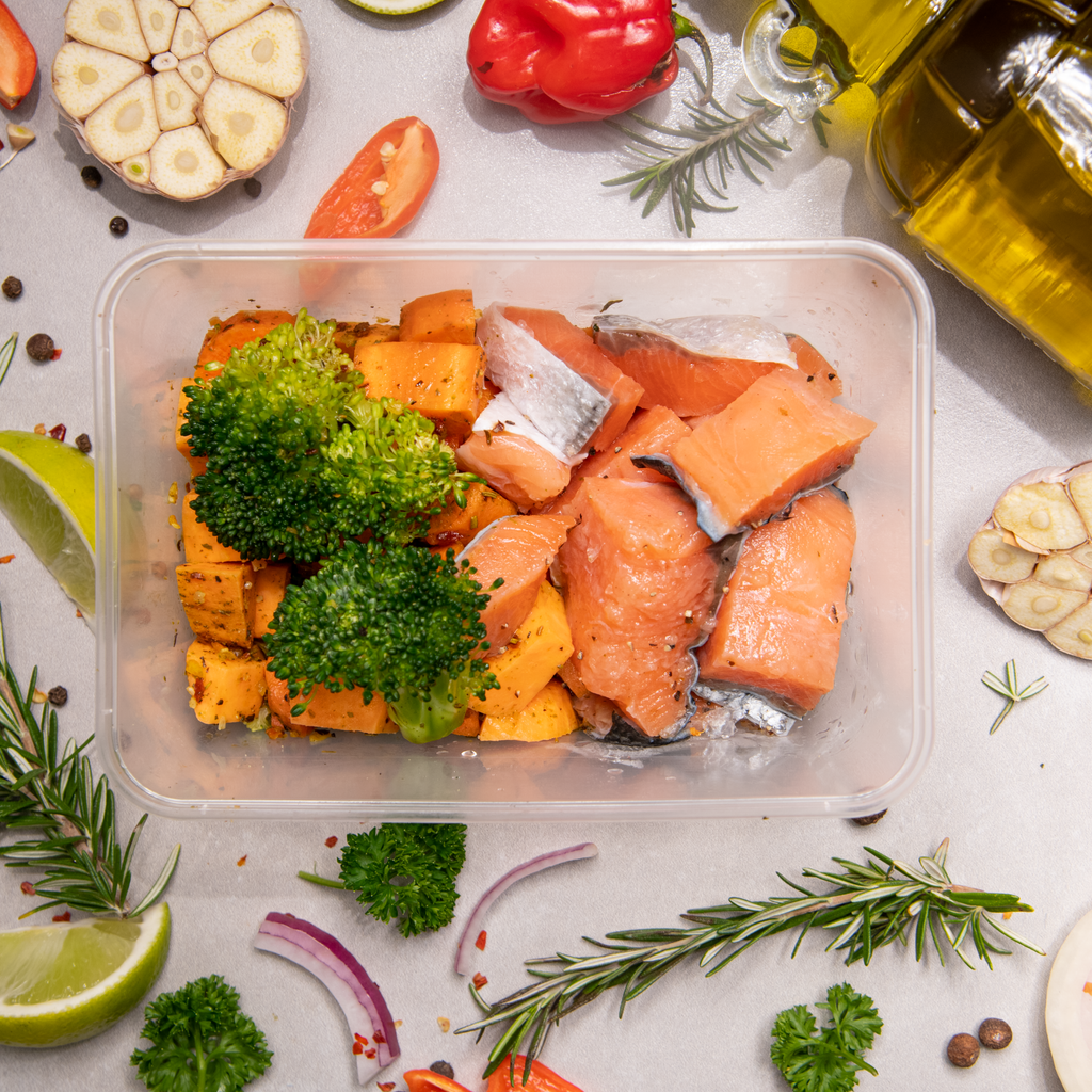 roduct Includes: 200g Tender Diced Salmon + 150g Mixed Vegetables